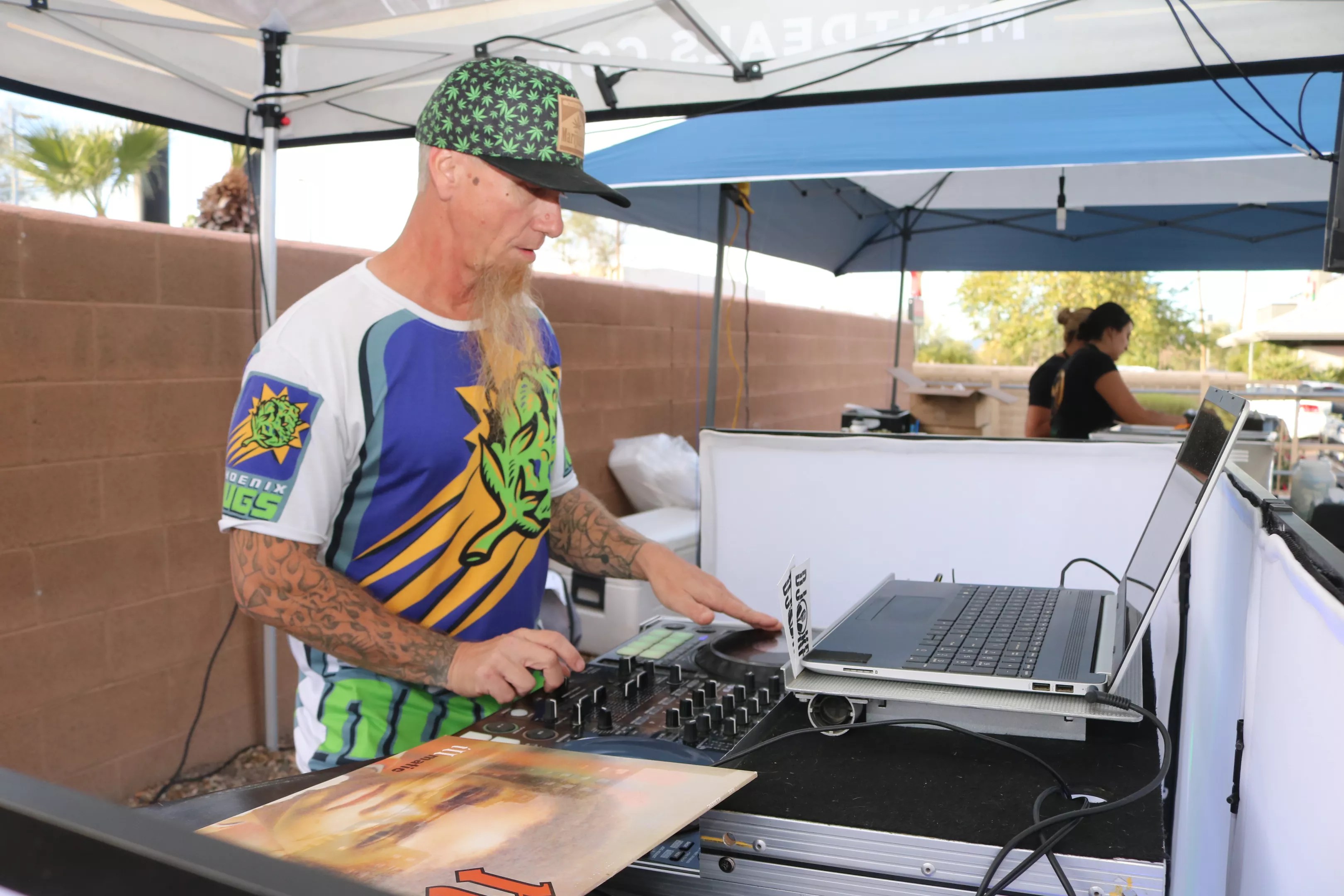 DJ KP is a Mesa-based artist who can be found at Mint dispensaries spinning hip-hop on the newer Serato DJ software platform. Still, KP, an acronym for “keep positive,” is an old-school DJ who used to spin vinyl records at clubs and events. “Now, my kids are learning on my old Numark turntables,” he says. “I still love old vinyl, but I go with an all-digital setup for events like this because it’s easier to lug my equipment around.”