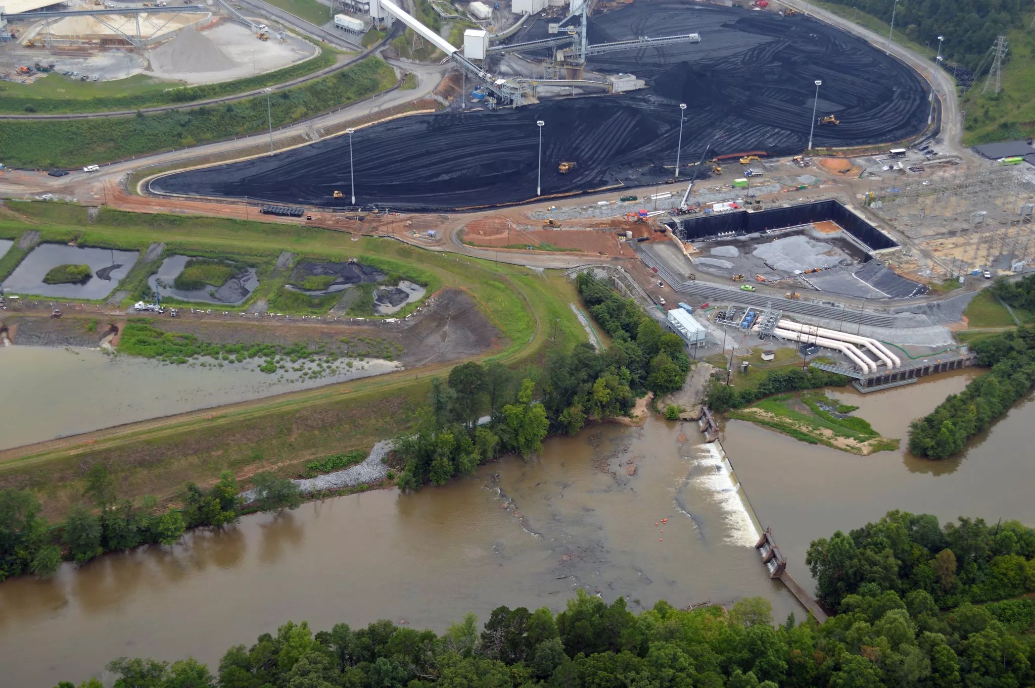 Coal ash from Duke Energy’s Cliffside coal-fired power plant spills into Broad River in North Carolina in 2016.