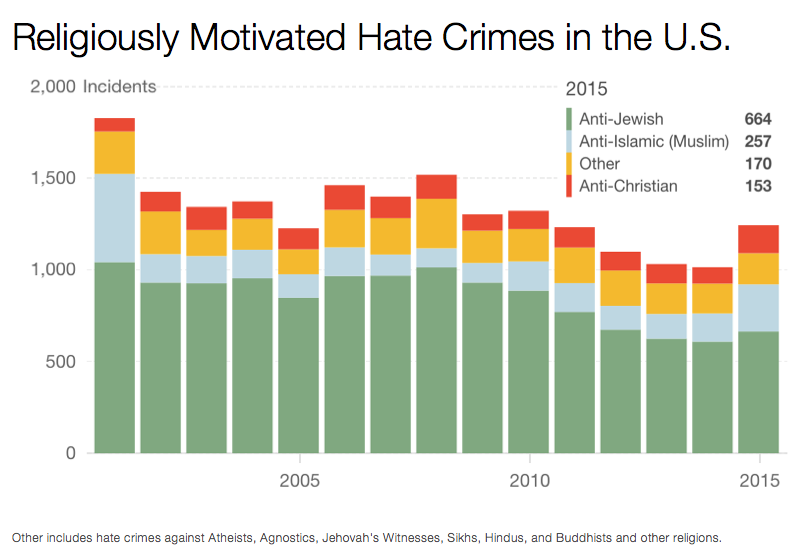 According to the FBI’s latest data, there were over 5,850 hate crimes nationwide in 2015. Attacks on Muslims surged by 67 percent, and anti-Semitic attacks were the most common form of religiously motivated hate crimes. And in Phoenix? The city saw a larger-than-average increase – hate crimes rose by 26 percent.