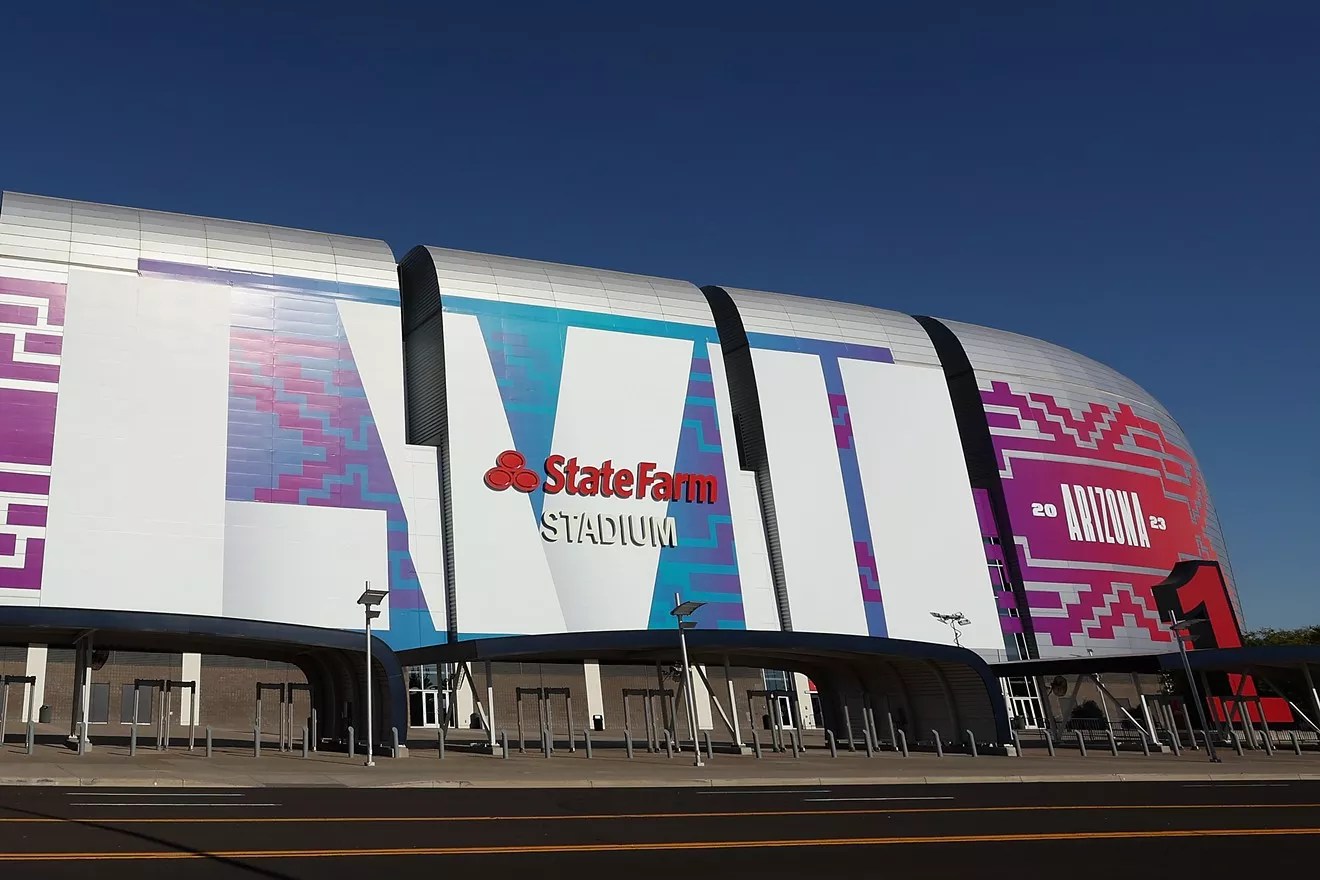 State Farm Stadium decked out for the Super Bowl in February.