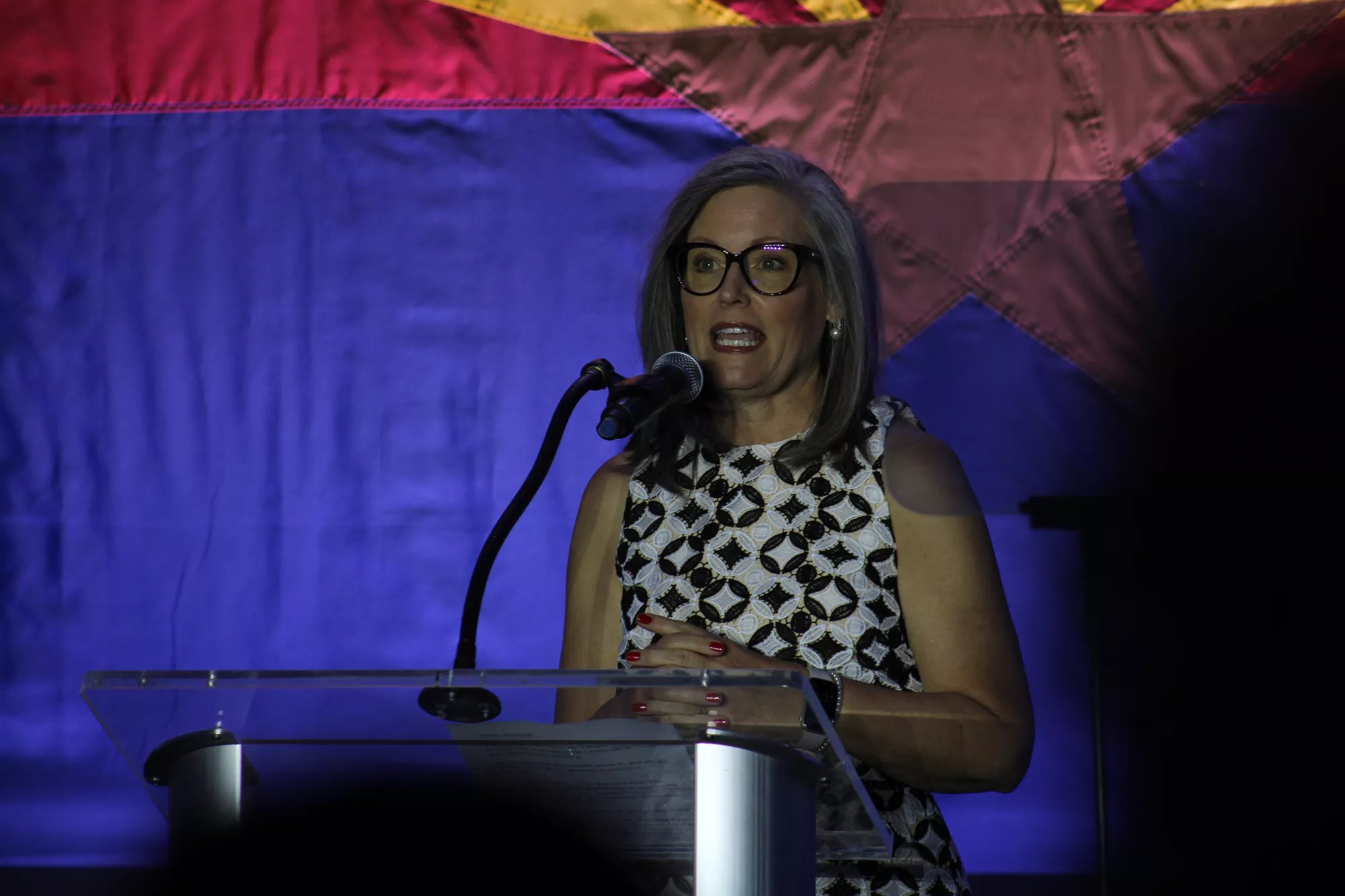Arizona Gov. Katie Hobbs speaks at an election watch party.