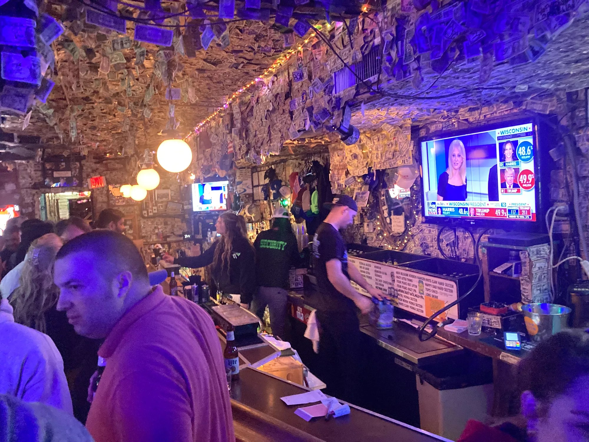 The couple were trying to unplug and step away from their phones, and had enjoyed burgers at the nearby Grapevine. At Pattie’s, the bar was showing the returns on one of two screens.