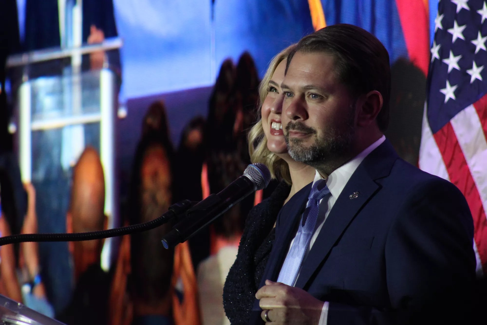 Enthusiasm was high for a Democratic Party success story in Arizona’s open Senate seat Tuesday night. While preliminary results remain tight, cheers were loud as U.S. Senate candidate and current Rep. Ruben Gallego took the stage with his wife Sydney Gallego at the party’s Election Night event.