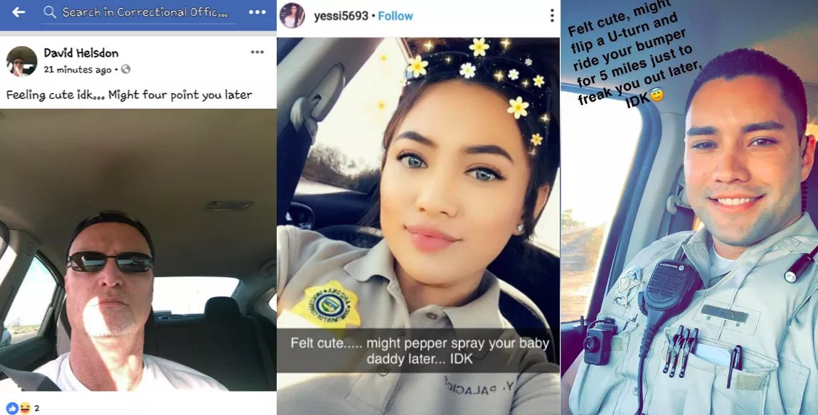 “Felt cute … might pepper spray your baby daddy later … IDK,” one apparent correctional officer with the Arizona Department of Corrections posted on Instagram several days ago, online records show.