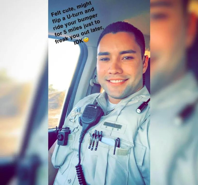 JT Garcia, apparently a Yuma County Sheriff’s deputy, shared a photo to Facebook of himself on April 17 captioned: “Felt cute, might flip a U-turn and ride your bumper for five miles just to freak you out later, IDK.”