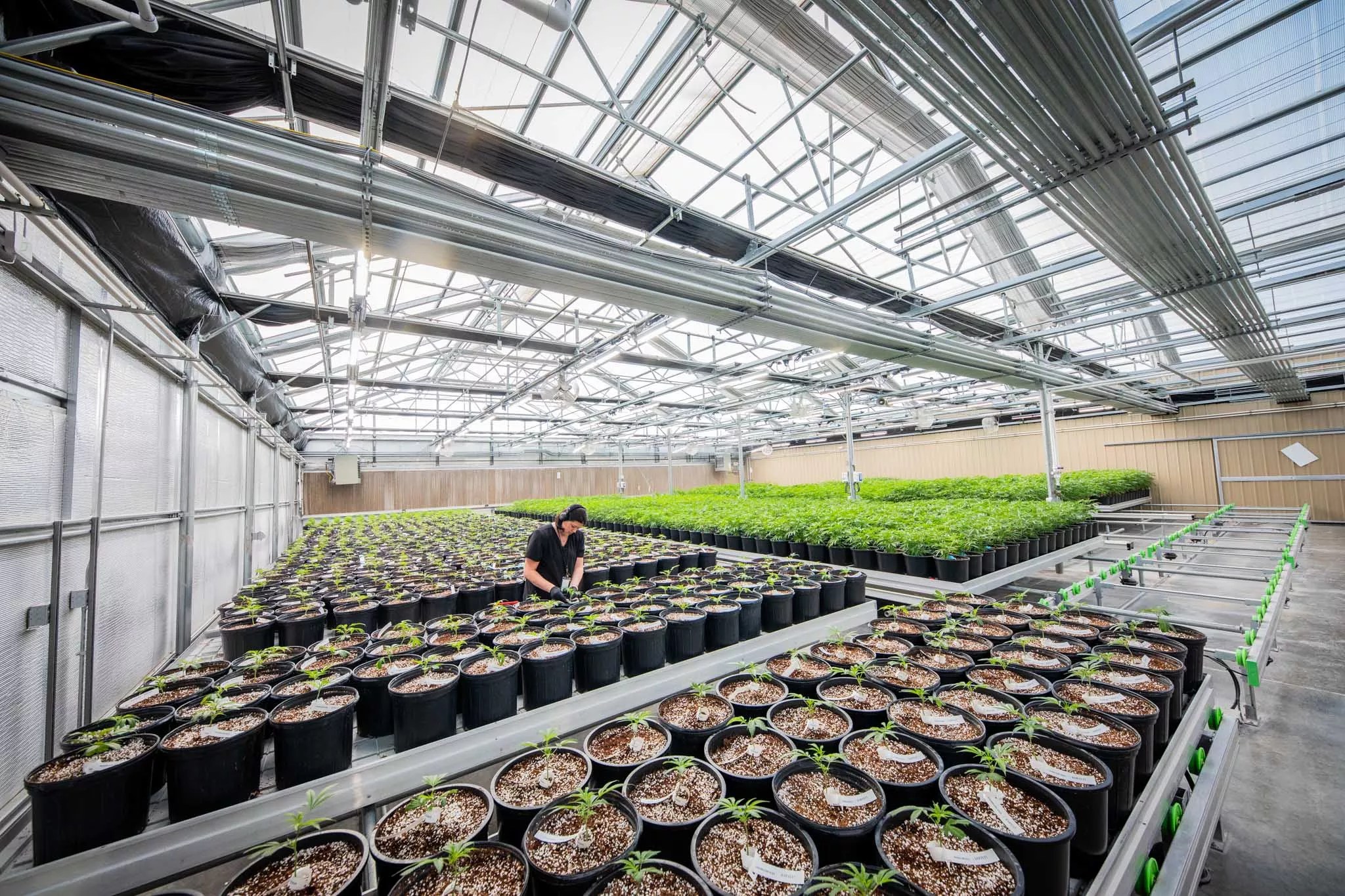 In one room the size of a walk-in closet, thousands of tiny seedlings spawn their first roots in plastic trays. Next door, in the green canopy of the 6,400-square-foot vegetation room, three Roomba vacuums zoom across the concrete floor every morning, scooping up fallen leaves and dirt. Deeper within the building, pungent, drying buds dangle from clothes hangers, waiting to be packaged into fat plastic bags.