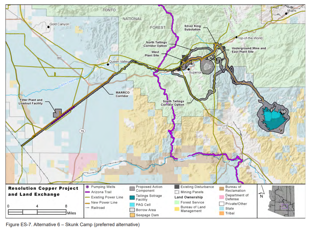 San Miguel was owned by BHP, a British-Australian company that owns a 55 percent stake in Resolution Copper (Rio Tinto owns the rest), and it was shuttered “with at least a 30-year supply of copper and expensive mining equipment was left underground,” the groups’ comments state.
