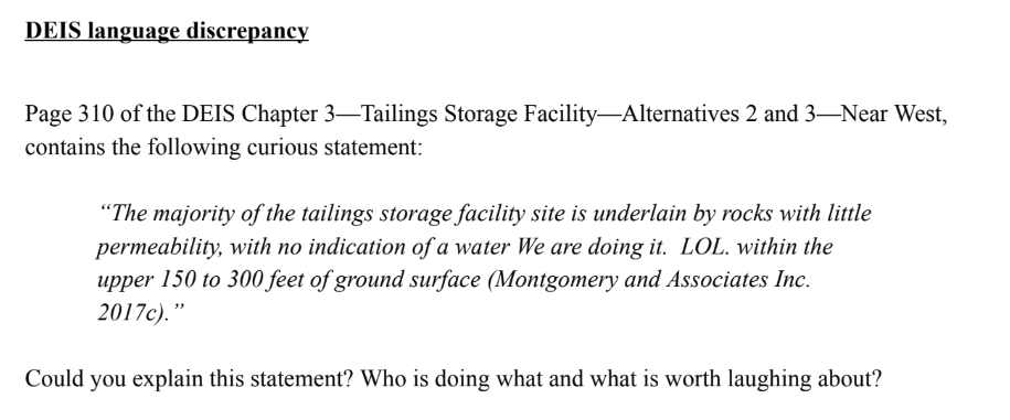 As evidence of the Forest Service’s haste, they point to a paragraph in the draft EIS’s third chapter, into which a rogue sentence and acronym – “We are doing it. LOL.” – somehow landed.