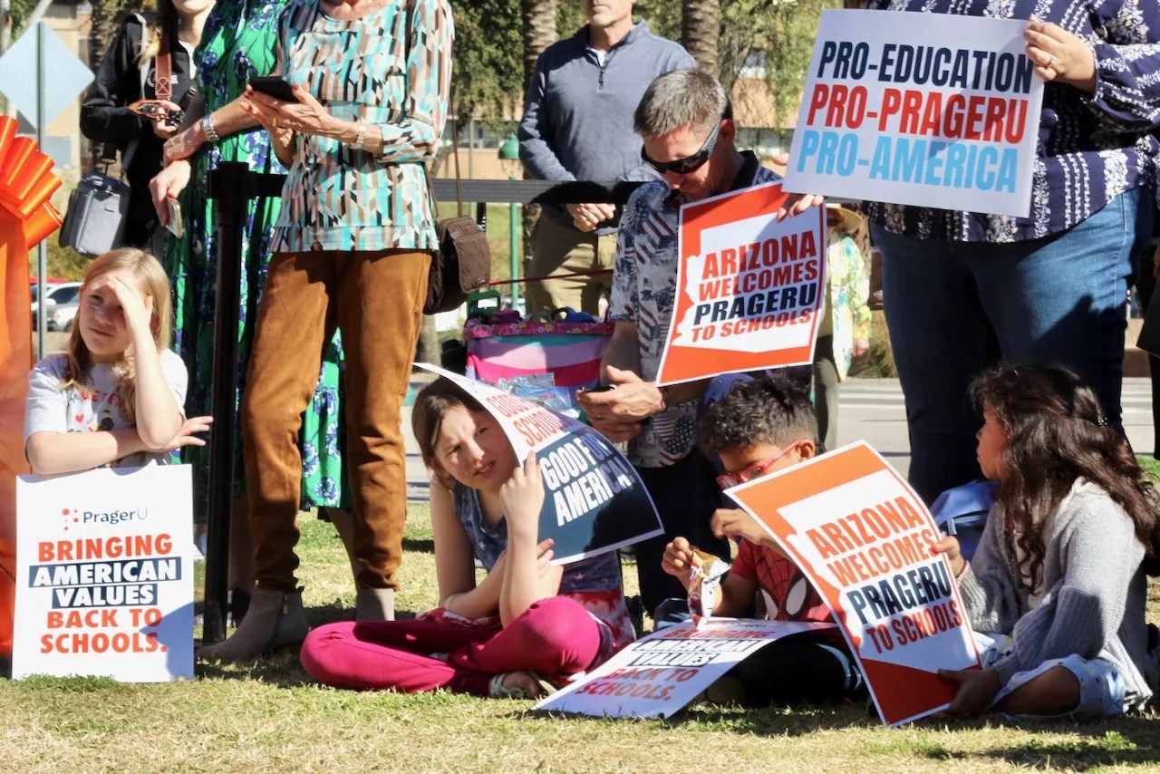 Children attended a press conference on Wednesday announcing a partnership between the Arizona Department of Education and PragerU.