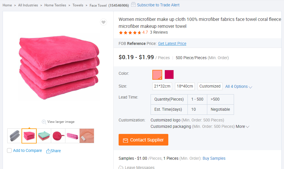 Hebei Laibang sells its cloth for between $0.19 to $1.99 with a minimum order of 500. Here’s what that product looks like on Alibaba: