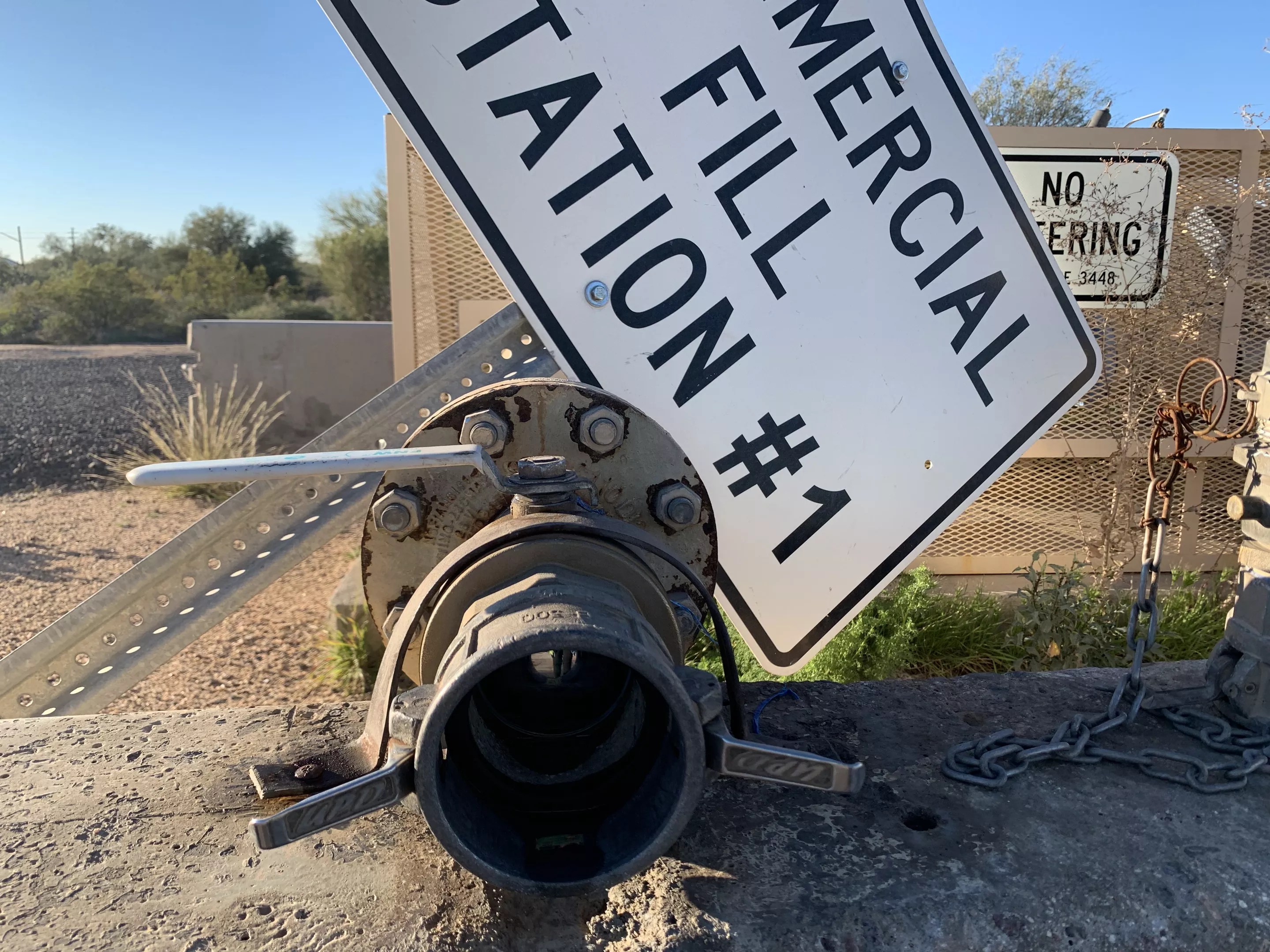 “Groundwater around the fringes of the [Maricopa County water basin] is not always reliable,” said Alan Dulaney, a retired city of Peoria administrator with three decades of experience in Arizona water policy. “The more wells you put in, the more straws you put in, the quicker it can run dry.” The Scottsdale commercial water fill station near Jomax and Pima Roads. Kristen Mosbrucker