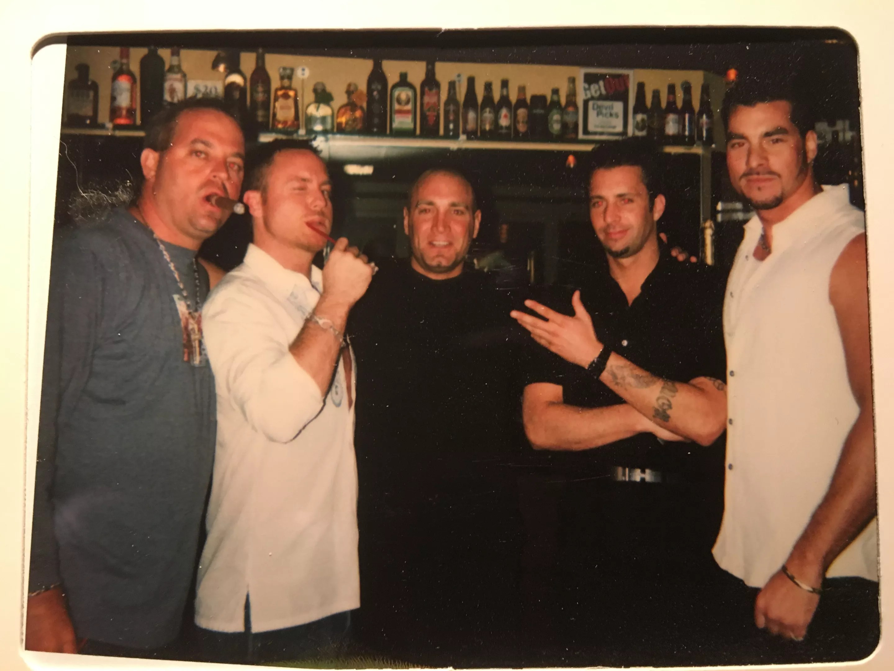 Todd Borowsky stands to the right of Mark Brooks (far-left) at Cat Eye Lounge in a photo dated “two decades ago.”
