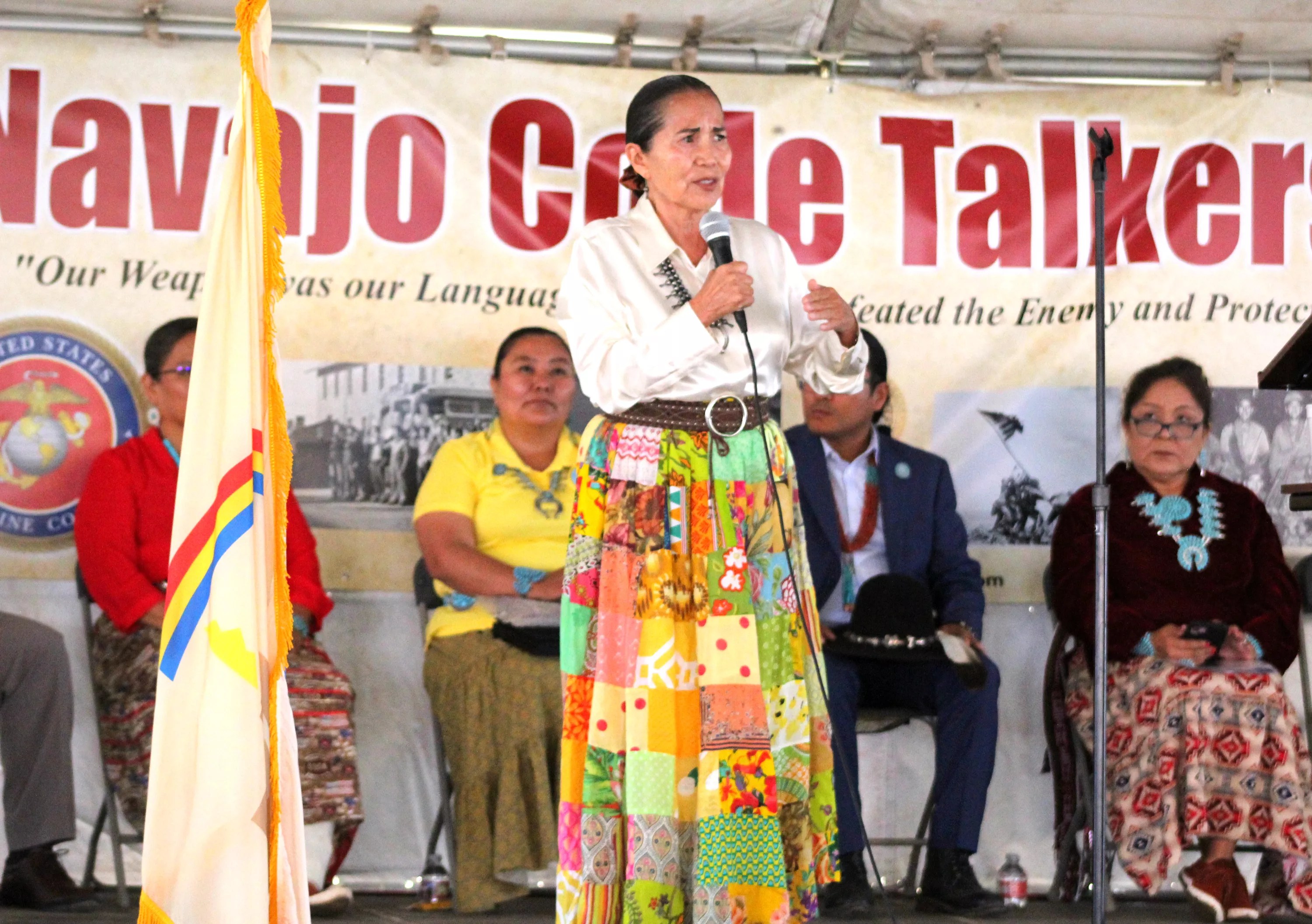 President Dr. Buu Nygren of the Navajo Nation speaks on Navajo Code Talkers Day.