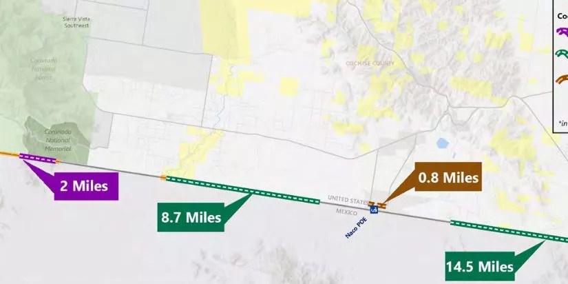 This CBP map includes a proposal for 2 miles of new border wall just south of the Coronado National Memorial.