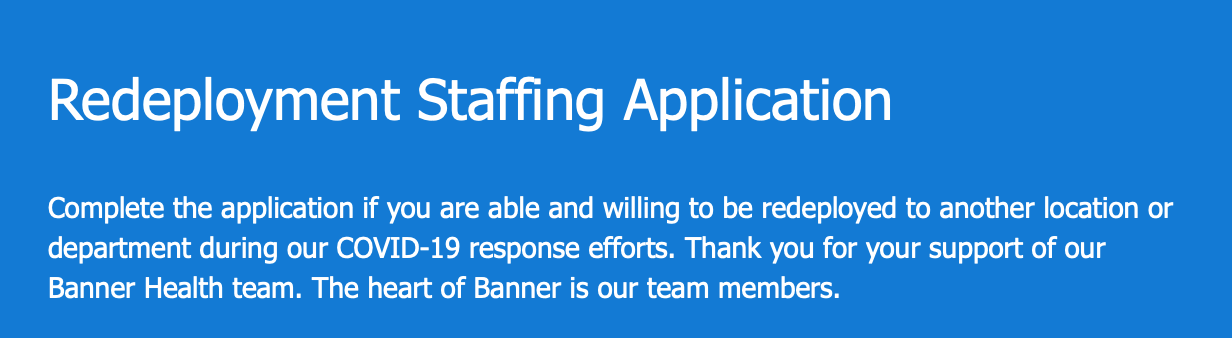 As the COVID-19 pandemic settled in, some health care workers at Banner working in departments that were losing patients – and therefore revenue – were given a choice: be redeployed to a “high-need” area, burn up PTO, or take time off and risk losing their job entirely.