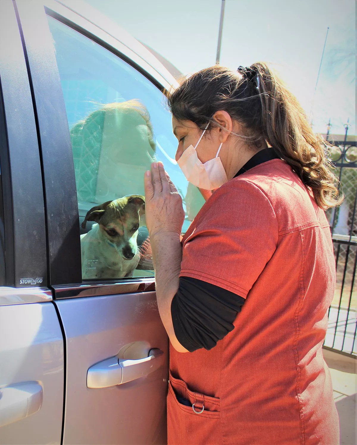 Netida Ramos kisses an Arizona-bound dog goodbye on March 3, 2021, at Barb