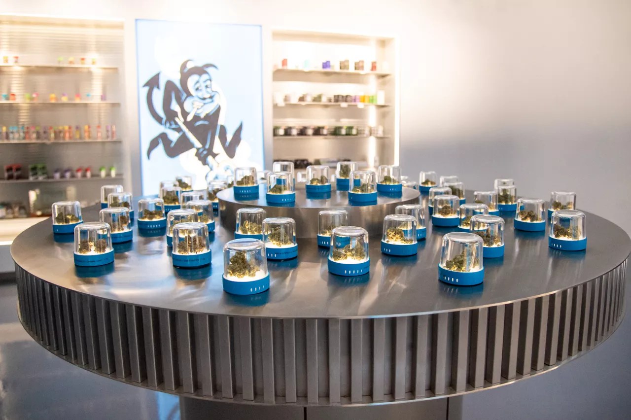 Cookies customers can get a close-up view of available flower and even take a whiff of the product through clear containers displayed in the dispensary.