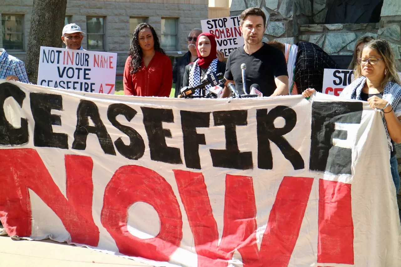 Kai Newkirk and other Valley activists spoke out against Israel’s military campaign that has killed tens of thousands of civilians in Gaza during a press conference on March 11 at the Arizona Capitol.
