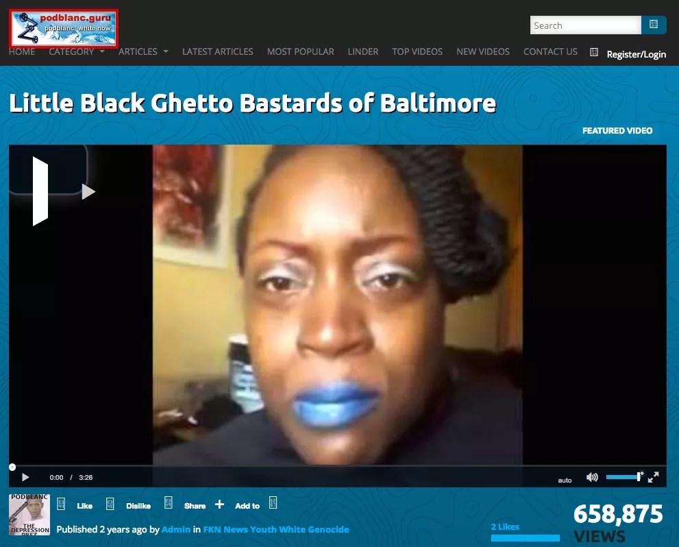 Upon publication by Podblanc, “Little Black Ghetto Bastards of Baltimore” was disseminated throughout white-supremacist circles on the Internet, becoming Podblanc’s most popular video.