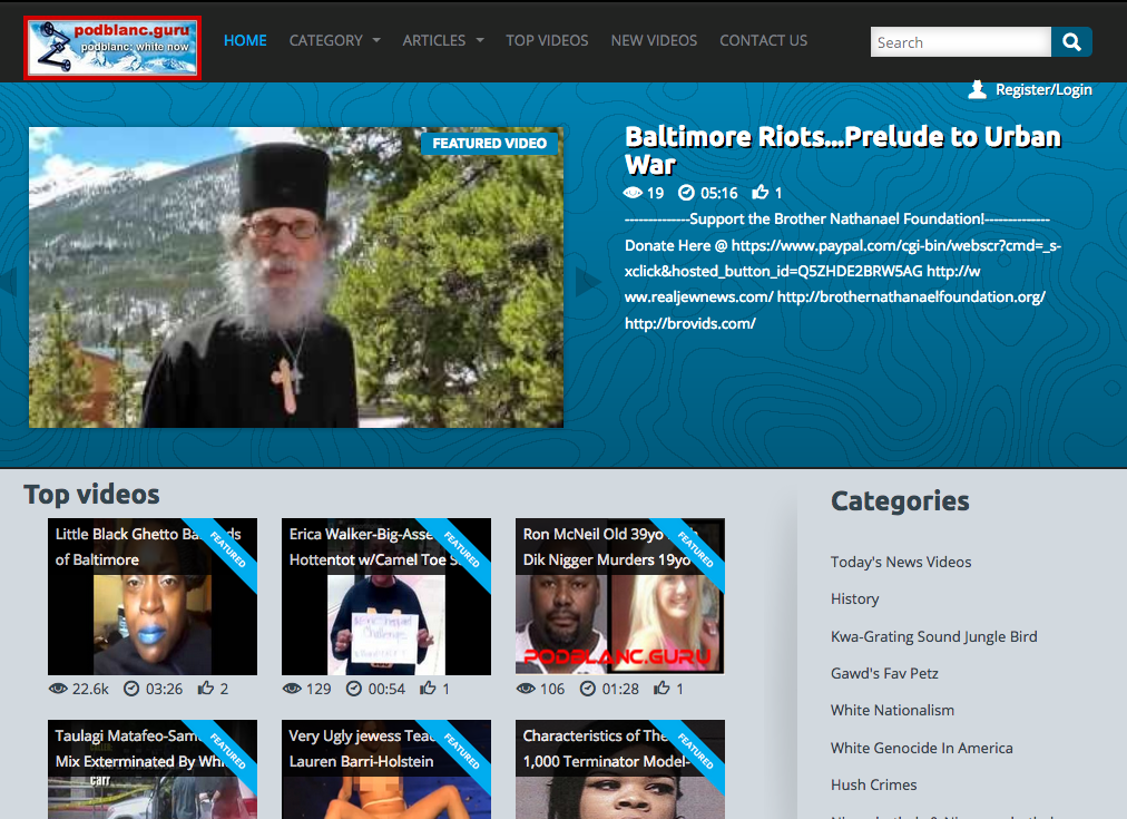 Podblanc is a website and video-sharing forum founded and operated by one of the U.S.’s most notorious white supremacists and neo-Nazis, Paul Craig Cobb. Cobb, who once proudly published video footage of Russian skinheads decapitating immigrants on Podblanc, founded the website in 2007 as the white-supremacist/white-nationalist community’s answer to YouTube (referred to by Cobb as “JewTube”).