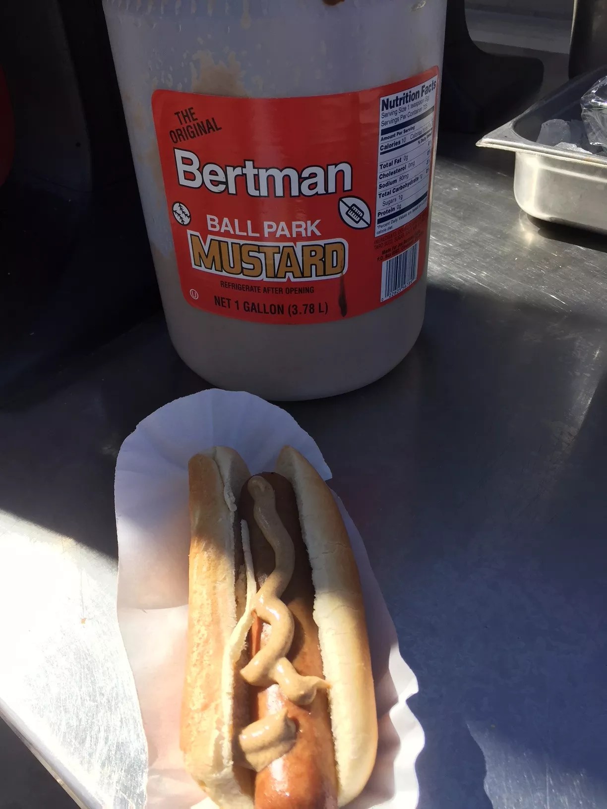 Besides, Goodyear is the only Cactus League stadium that has an alternative to French’s mustard. Cleveland sports arenas serve two legendary brown condiments: Bertman Ballpark Mustard and Stadium Mustard. Some people remove the hot dogs and slather their buns with Ballpark or Stadium.