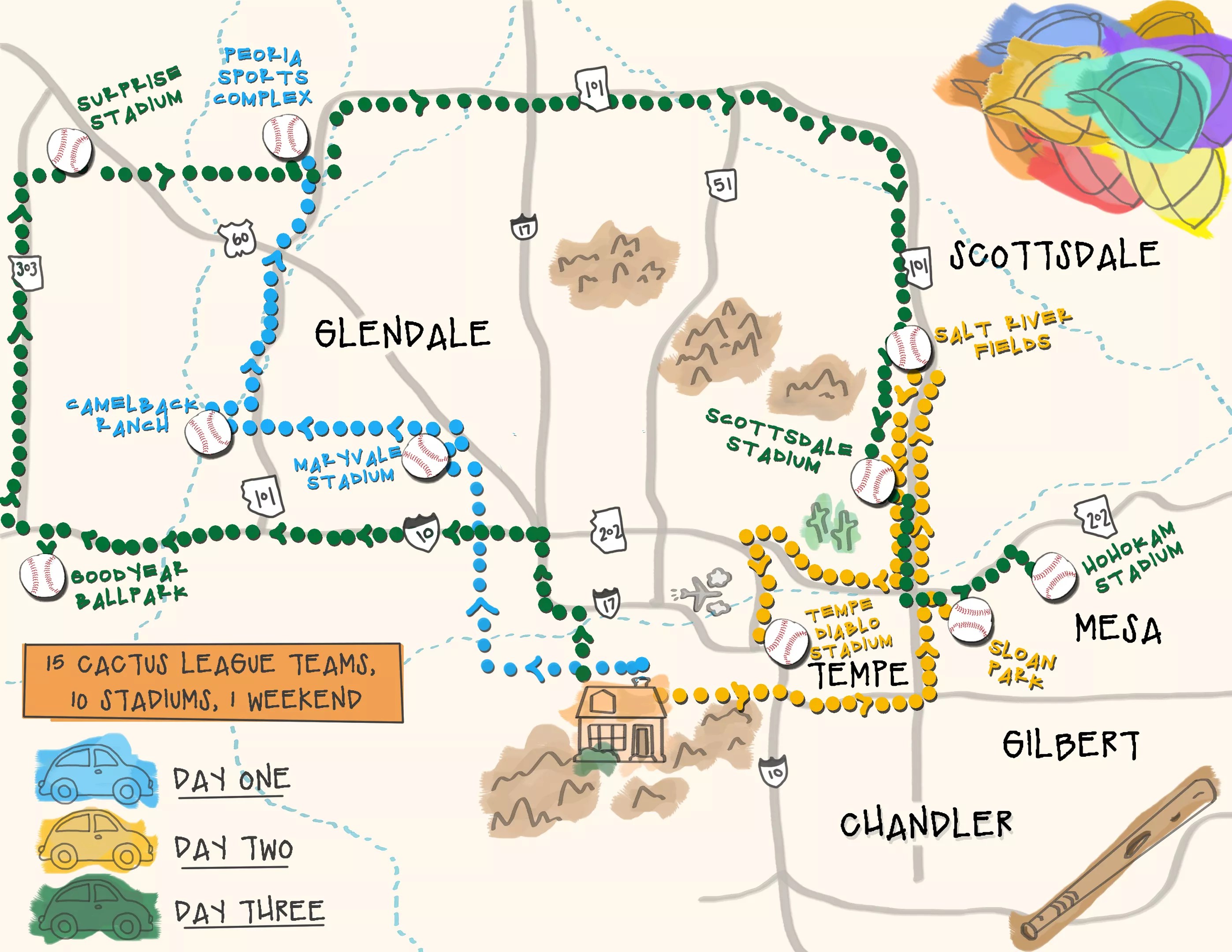 DAY TWO: SATURDAY, FEBRUARY 24 Have you ever ridden the Cactus League Trail, as New Times Editor Stuart Warner did? He started each day from his home in south Phoenix. Claire Lawton
