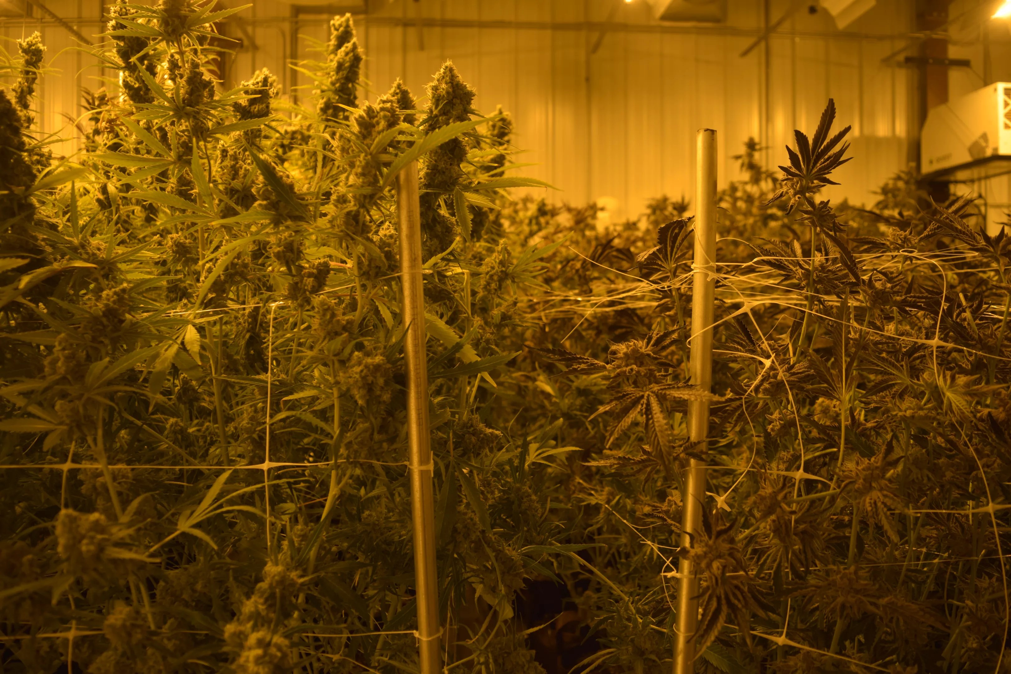 Hundreds of cannabis plants relaxed in a harvest room, which looked like a forest of blended shades of green bathed in high-pressure sodium lights. Tall, bright green plants bloom in the center of the room – that’s the sativa Jack Herer, its fragrance light and fruity. Next to it are smaller, darker Girl Scout Cookies, an indica, which have a noticeably earthier, pine-tree-like smell.