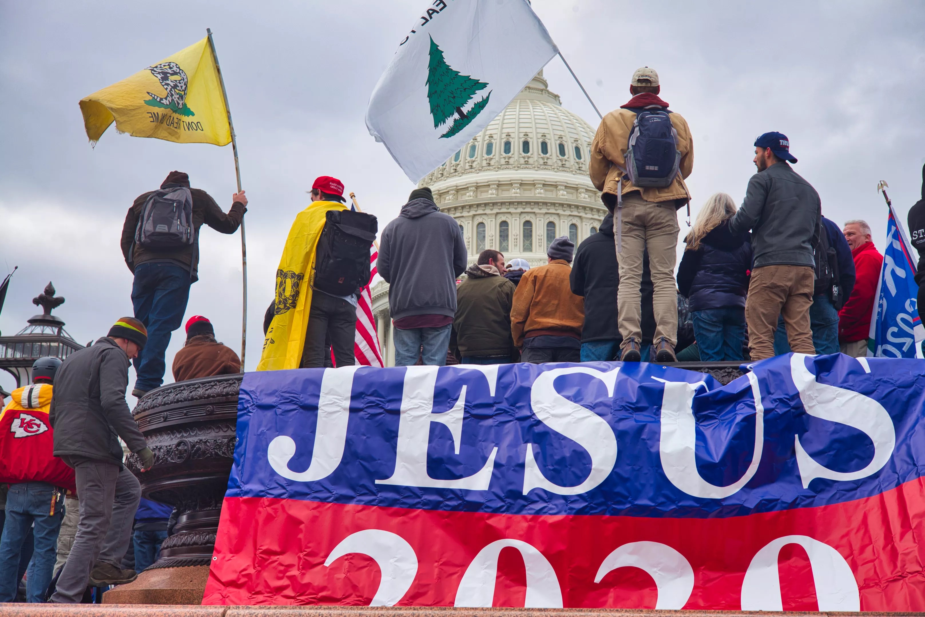 In recent years, though, the banner has been adopted by some evangelicals, becoming an emblem of far-right Christian nationalism.