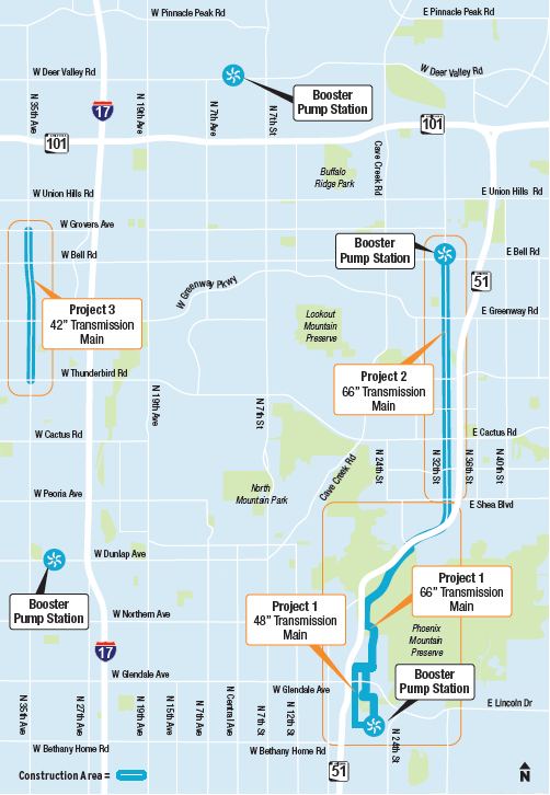There, she learned that the pipeline, for which the Phoenix City Council approved funding back in January, would run from the 24th Street Water Treatment Plant, just south of Granada Park at Lincoln Drive and North 24th Street, to the Union Hills Water Treatment Plant in northern Phoenix.