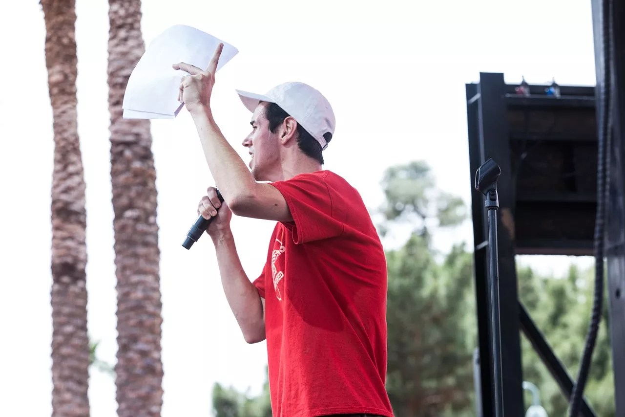 He describes the origins of the #RedForEd movement, when teachers wore red shirts to school this spring, and recaps the Arizona teachers’ strike. The cheering audience eats it up. At one point, attendees break into the “Red for Ed” chant that dominated the Capitol rallies during the weeklong strike.