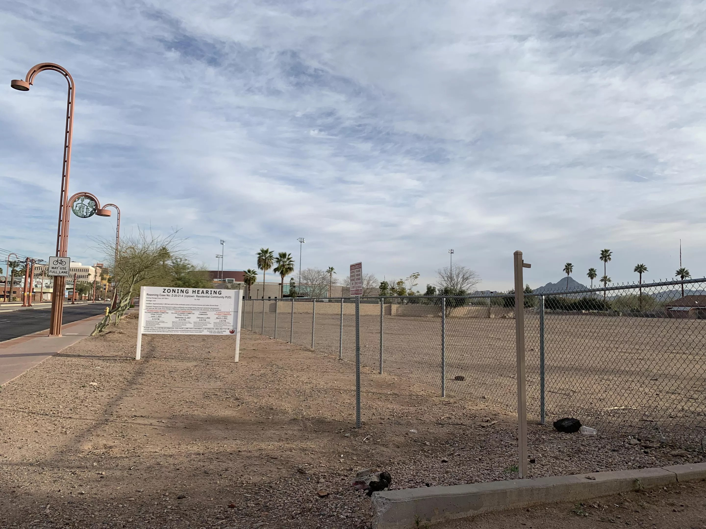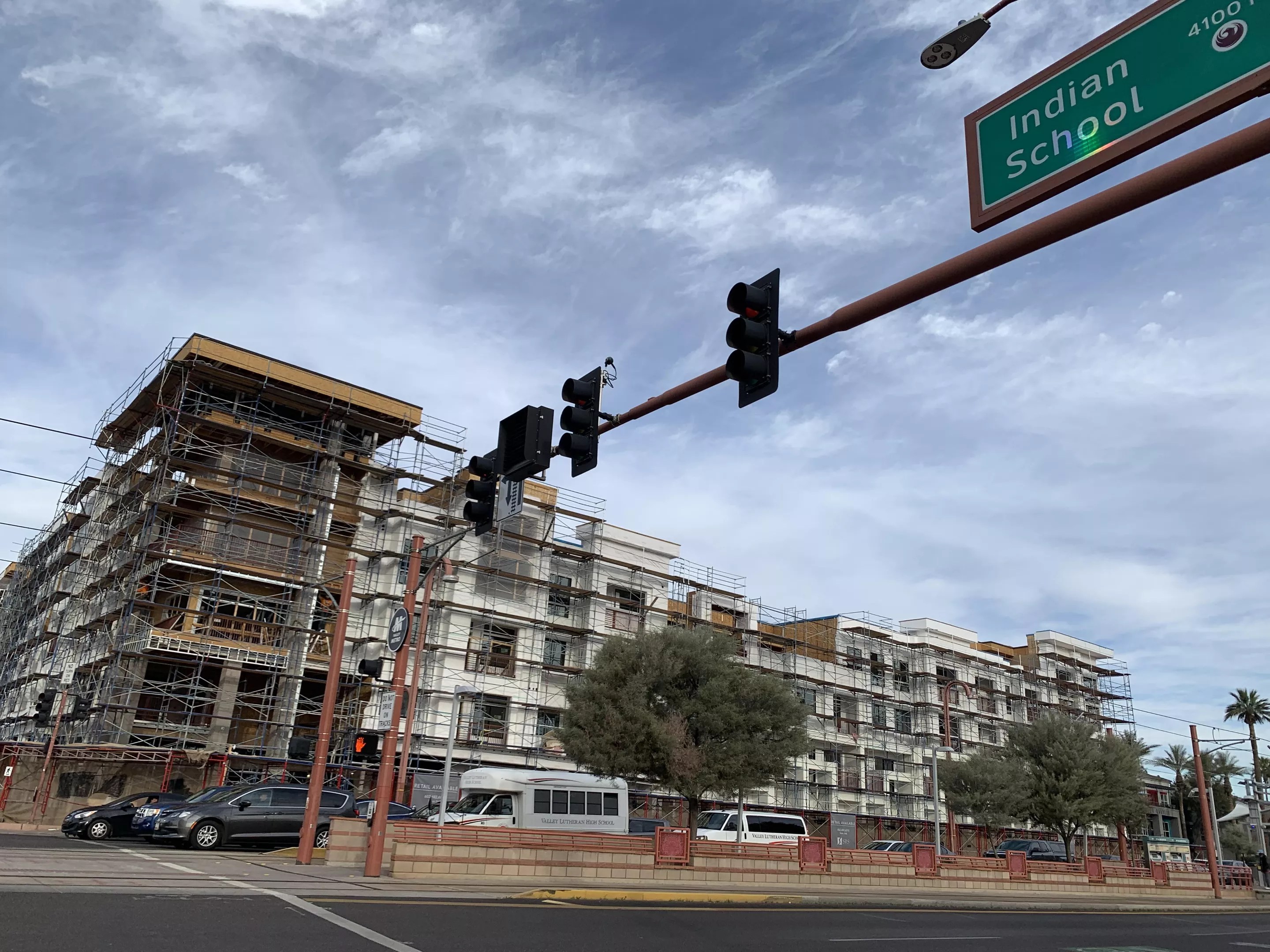 Across Central Avenue, and the Indian School light rail train stop, construction workers are meticulously building a different luxury high-rise complete with retail on the ground floor stretching an entire city block.