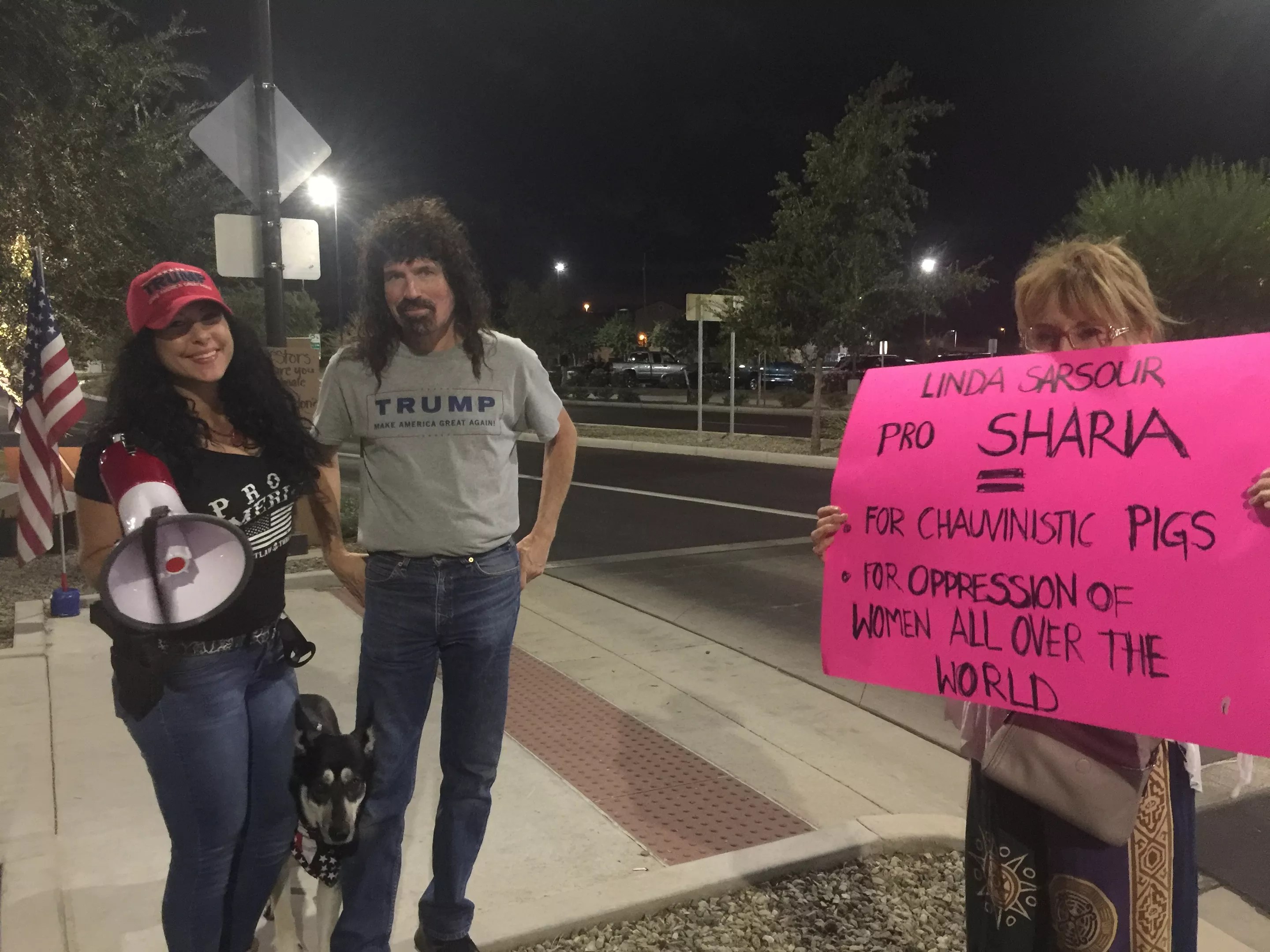 “LINDA SARSOUR IS A DAMN TERRORIST. NOT WELCOME IN ARIZONA. ARIZONA DOES NOT WANT TERRORIST LINDA SARSOUR HERE.”
