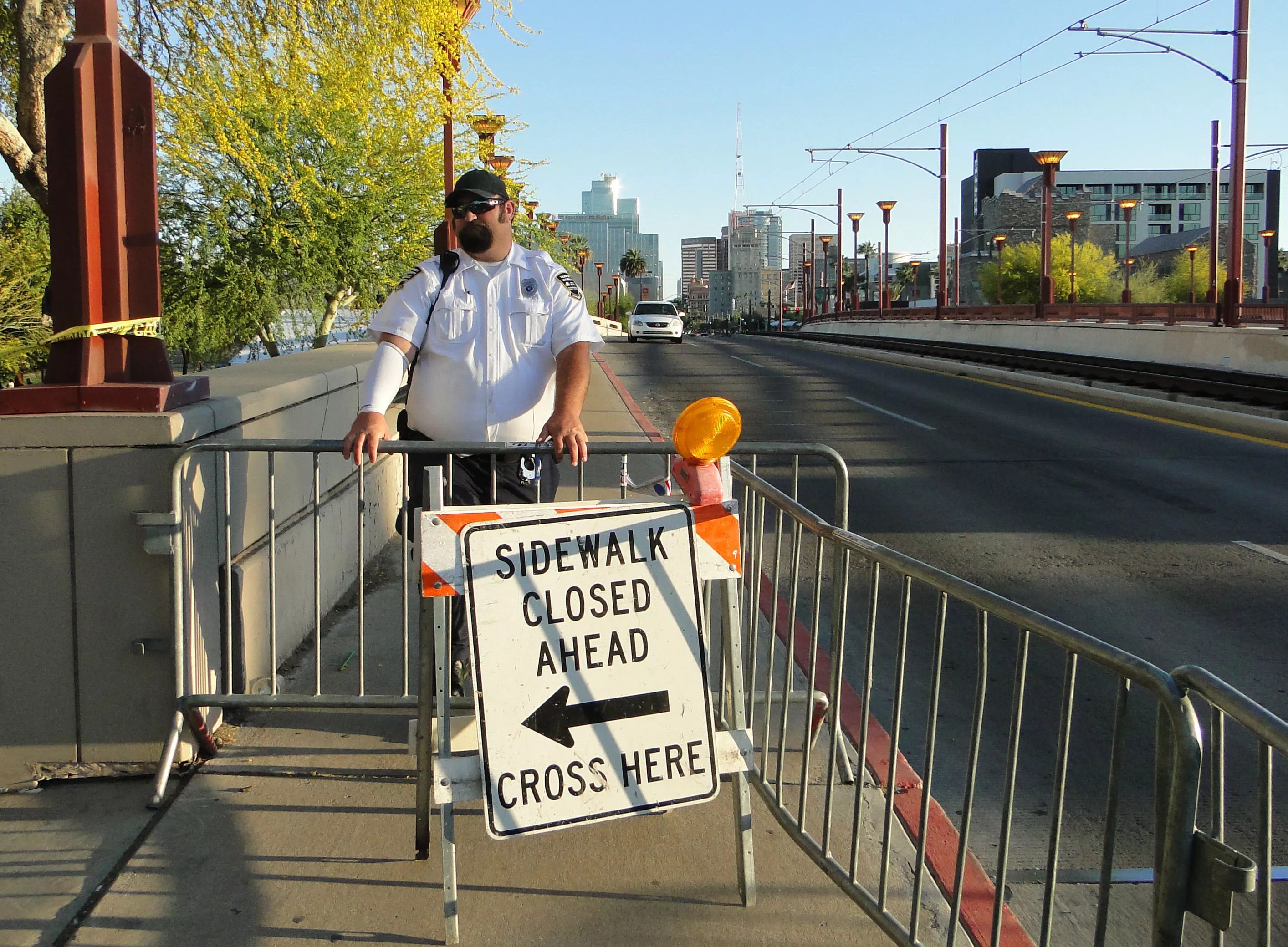 Security was heavy in and around Margaret Hance Park Sunday. Police stopped pedestrians crossing the Central Avenue bridge.
