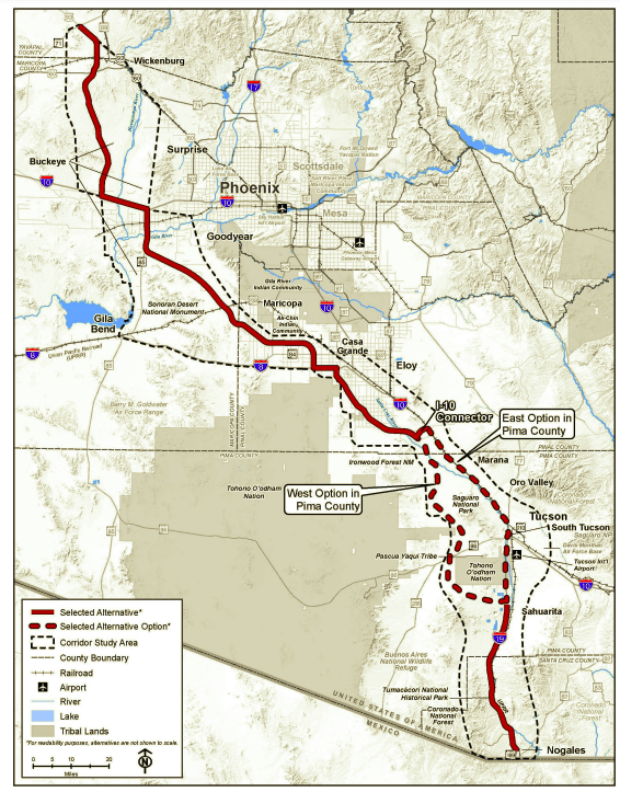 “This proposed statewide highway would improve Arizona’s access to regional and international markets while opening up new opportunities for enhanced travel, mobility, trade, commerce, job growth, and economic competitiveness,” said ADOT Director John Halikowski in a statement.