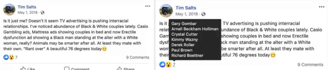 In another private post shared with New Times, Gary Gombar liked a status posted by a man named Tim Salts which stated: “Is it just me? Doesn’t it seem TV advertising is pushing interracial relationships. I’ve noticed abundance of Black & White couples lately. Casio [sic] Gambling ads, Mattress ads showing couples in bed and now Erectile dysfunction ad showing a Black man standing at the alter [sic] with a White woman, really? Animals may be smarter after all. At least they mate with their own.”