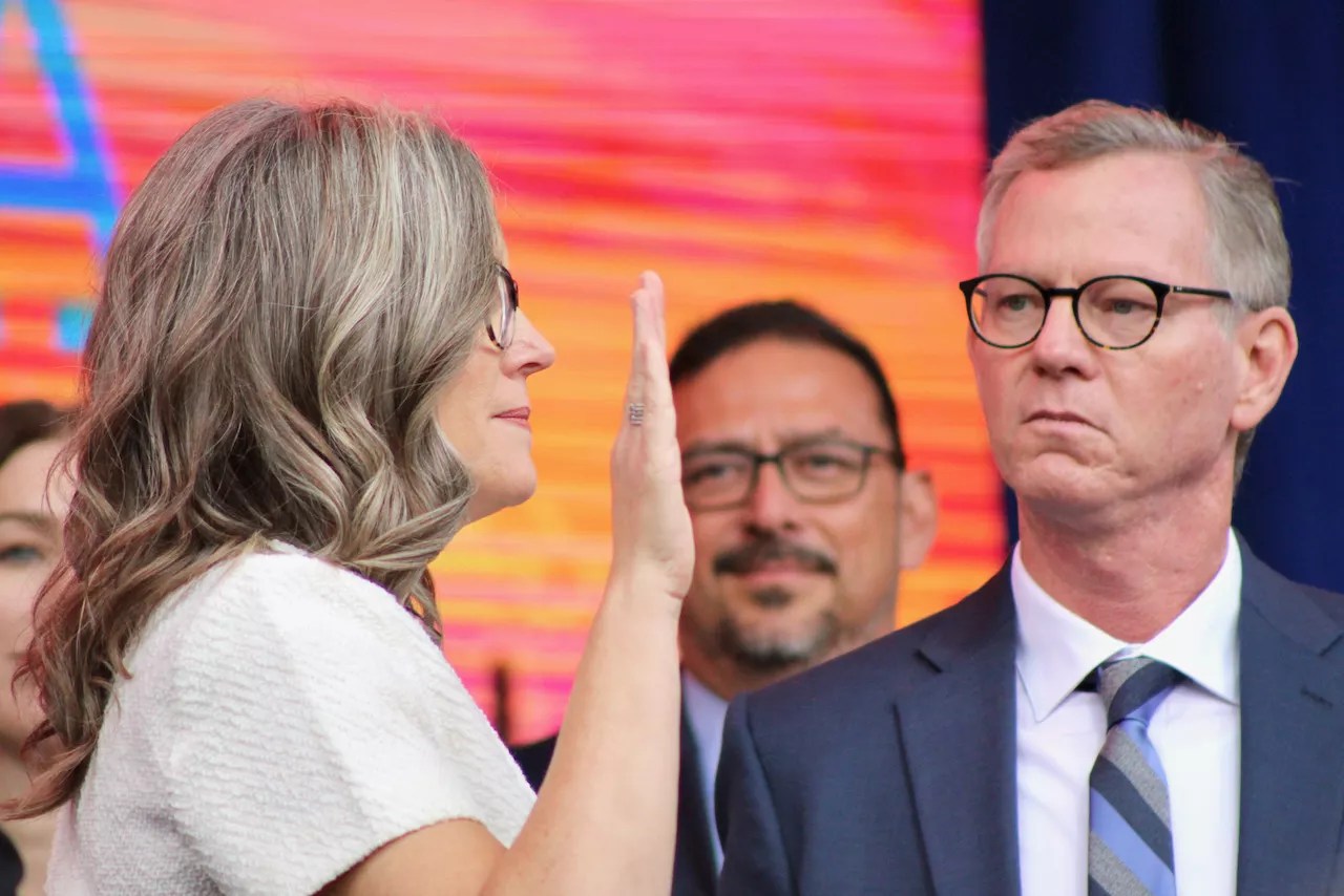 Governor Katie Hobbs took the oath of office on January 5 as her husband Patrick Goodman watched.