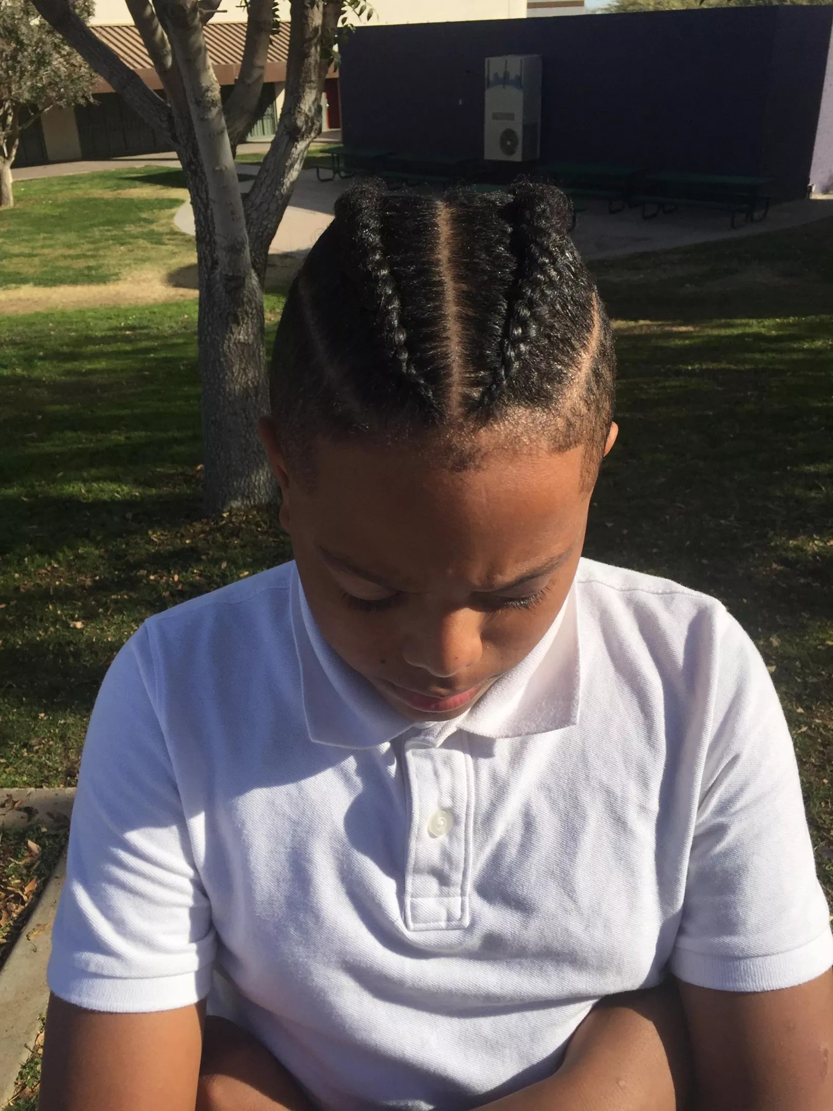 Last week, Anderson wrote on Facebook that a teacher called her to say Nasir’s hairstyle didn’t meet the boys’ dress code outlined in the students handbook, even though his hair was clean-cut, in two braids down the back.