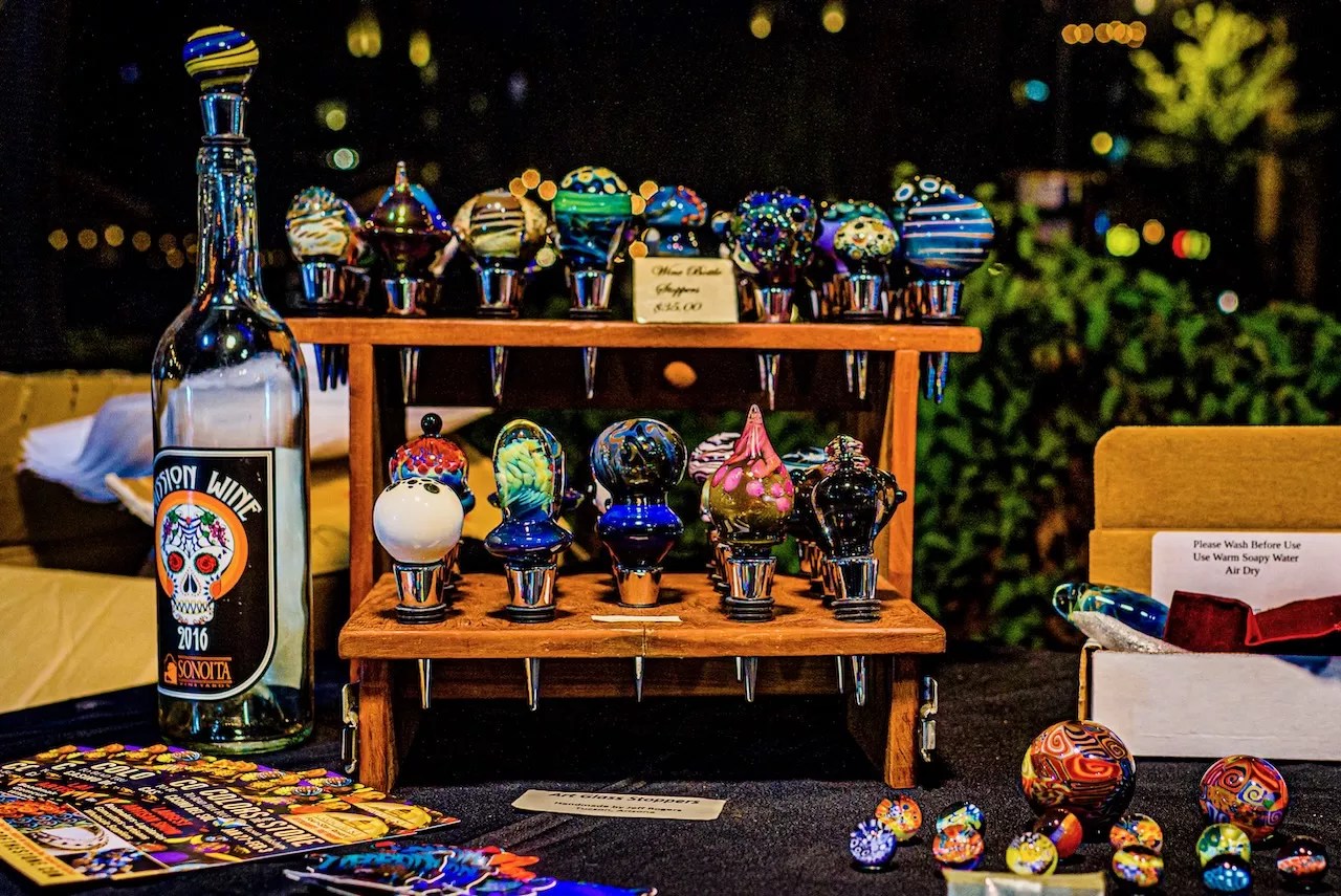 From the Tryptamine Tower to wine stoppers and a pendant for Arizona Diamondbacks fans, about 20 artists from across the Valley showcased their handcrafted creations during a glass blower holiday market in mid December.