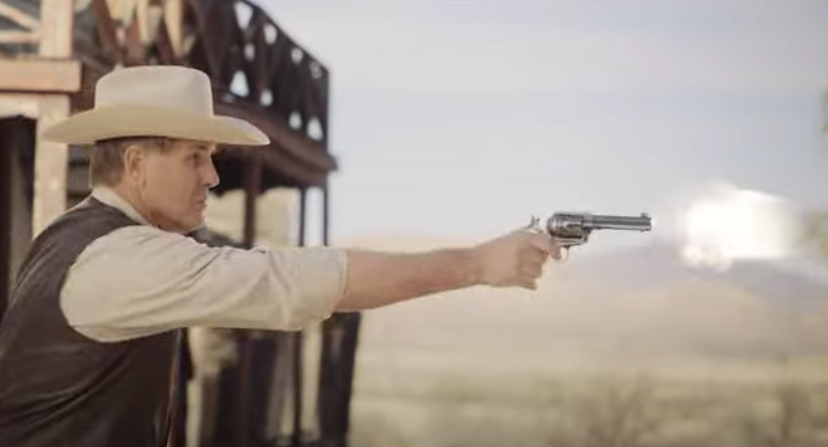 In the ad, Lamon plays himself as “Big Jim Lamon,” the altruistic Wild West sheriff who saves the good people of Arizona from the unholy Washington D.C. Gang in a Hollywood-esque quick-draw duel.