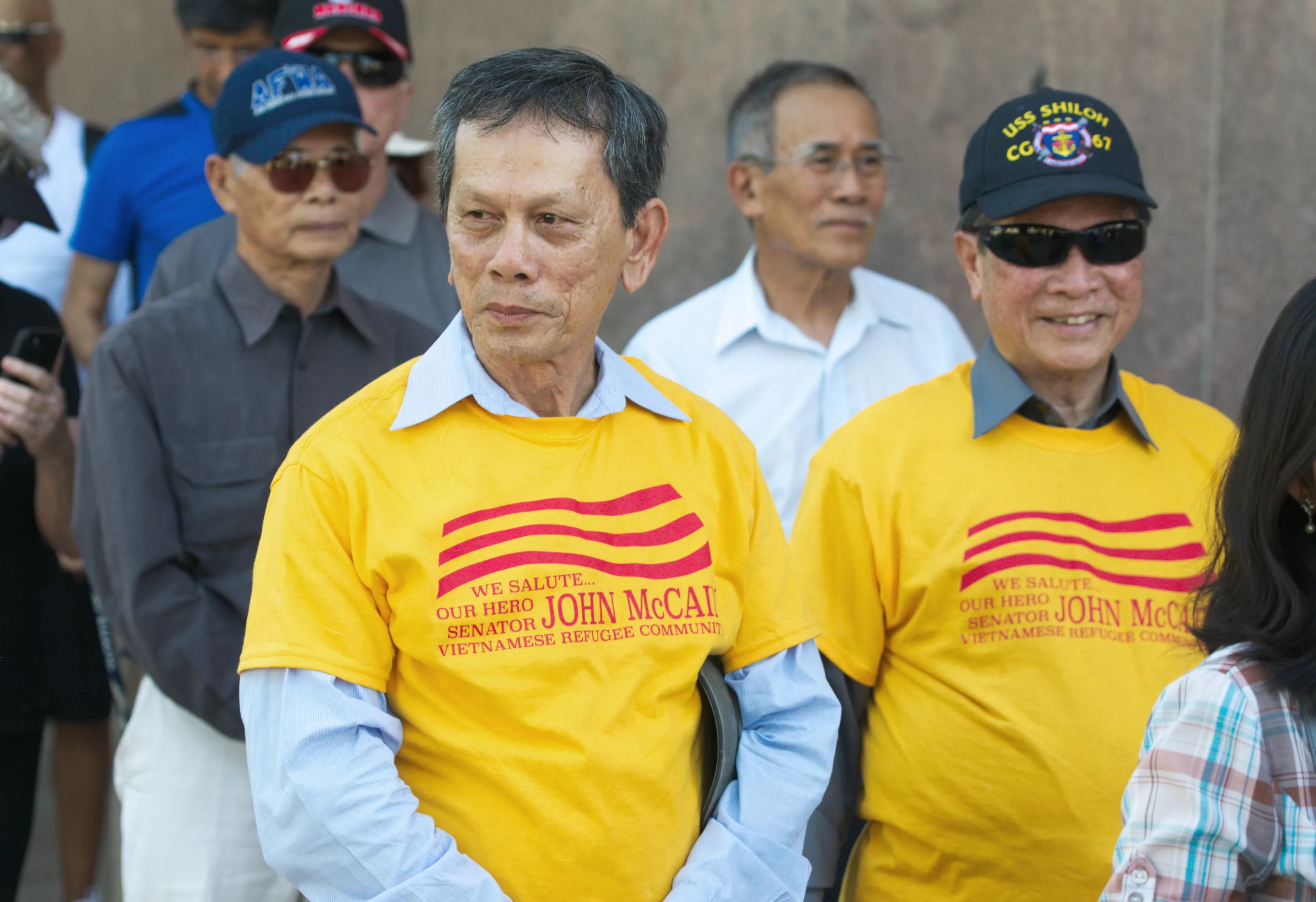 “We are Vietnamese refugees and he is our hero. He was a great man. We live in California now, but before that, I lived in Phoenix and knew him. So I had to come to pay my respects. Many Vietnamese refugees live in Los Angeles and many of us [took a bus] this morning to come here today. We have the flag of [South Vietnam] with us and it means freedom. It was the flag used before the Vietnam War where many American people died. Over there, the flag means something else: the fight for freedom. To us, [John McCain] was a fighter. He took care of people, he loved people, and he loved this country. And we loved him very much.”