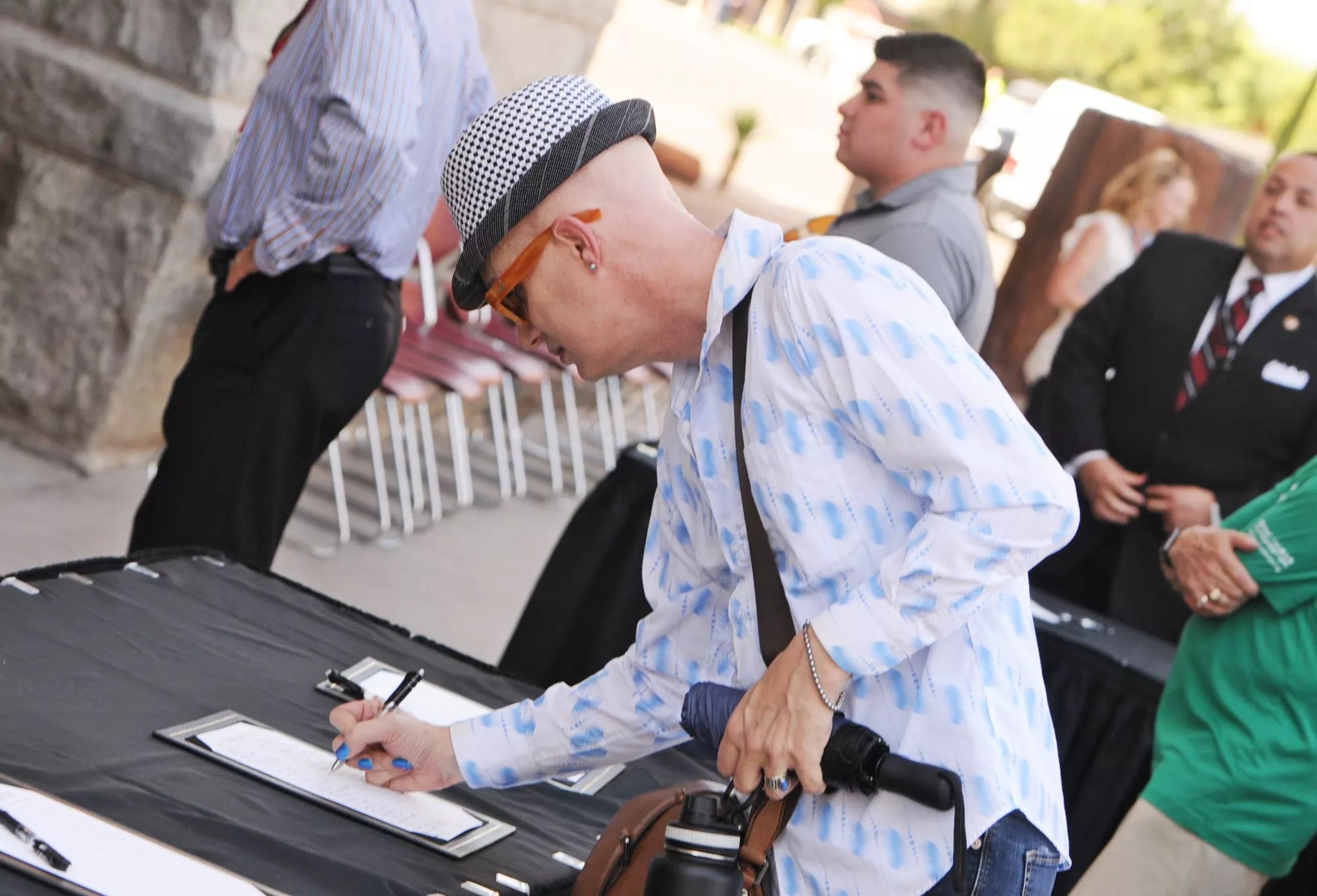 Darrell Grant of Anthem signs the guestbook for John McCain outside of the Arizona State Capitol.