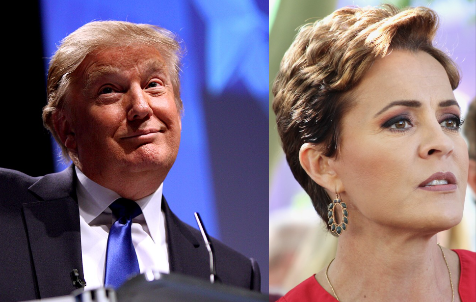 Former President Donald Trump with Kari Lake during his speech at a Florence, Ariz., campaign stop in January 2022.