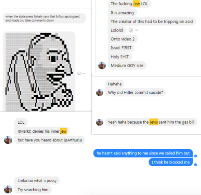CRU’s statement included links to additional screenshots from chats in which Gilbert and Douraghy themselves use anti-Semitic rhetoric.