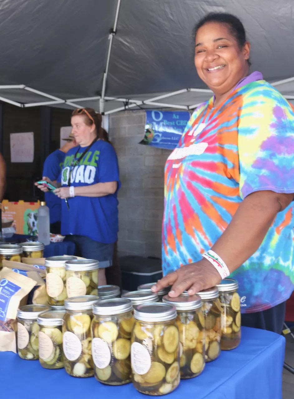 Adrianne Goudeau sold a few bottles of “goudes,” including her Hemp Bread and Butter Pickles and Hemp Spicy Cauliflower Mix, at the festival.