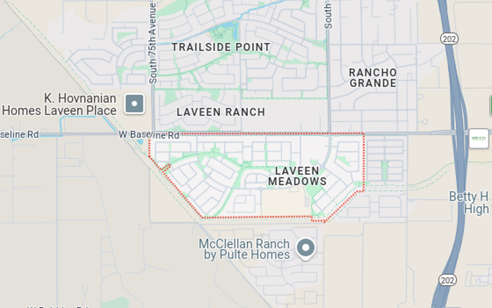 Just south of Laveen Ranch, this neighborhood also is home to many single-family homes. Western Maricopa County’s Desert Meadows School and Laveen Meadows Park also are found in this neighborhood.