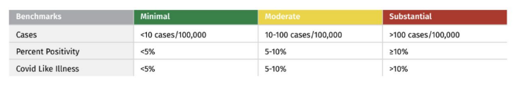 Counties must meet all three benchmarks for two weeks to move to the lower stage.
