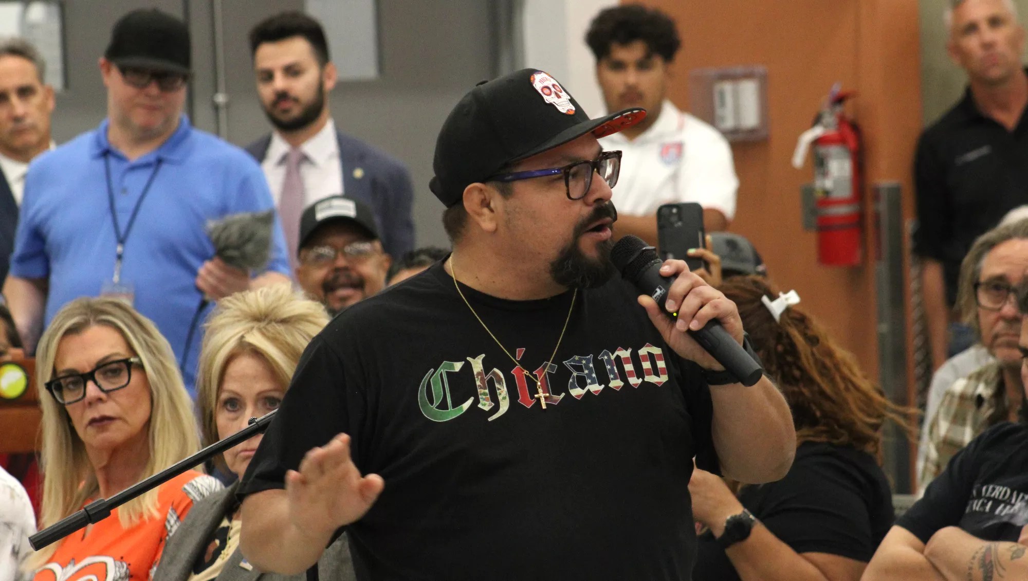 Ricardo Reyes, an organizer with the group Common Defense, confronted an older woman who he said told another speaker to “go back to Mexico.” When Reyes called her out, she tried to grab his phone. He slapped her hand away. Warshaw stepped in to defuse the situation, but bickering between attendees continued throughout the meeting. Reyes later posted a picture of the woman on X. New Times could not confirm that the woman made the comment.