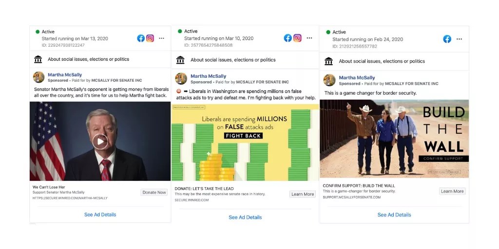 On the same day Arizona’s Republican Senator Martha McSally pledged to suspend political campaigning and “focus 100% of my time on public service” during a national emergency, she launched a new round of Facebook ads for her political campaign, Facebook’s ad library shows.