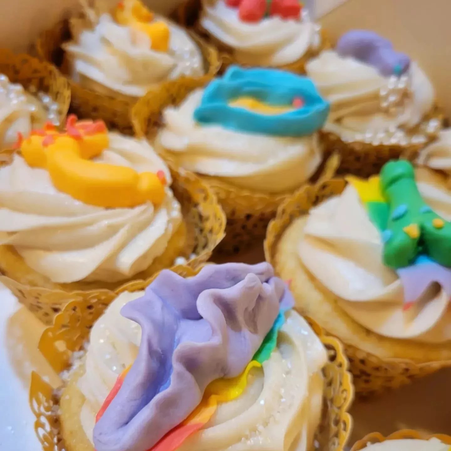Lez Get Baked’s Retro Jay rainbow vagina cupcakes.