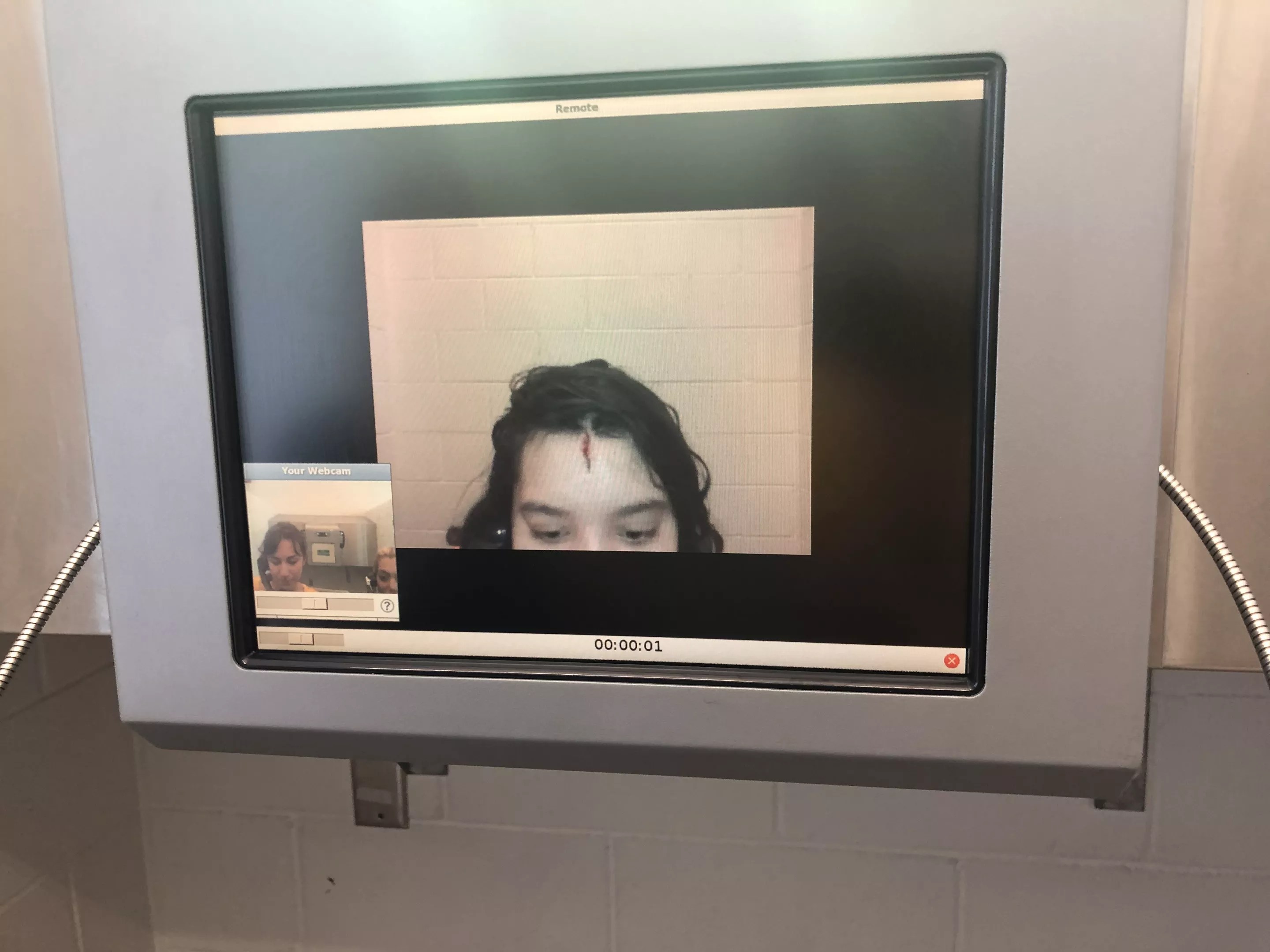 A week after her July 23 hearing, Valentina and Vangelina Gloria sat with New Times in Lower Buckeye Jail, talking through a video monitor. She was again able to have visits. Officers did not offer an explanation for the change. Valentina Gloria talks at Lower Buckeye jail on Monday, July 29. She cut her head after hitting it against a wall in the facility. Hannah Critchfield